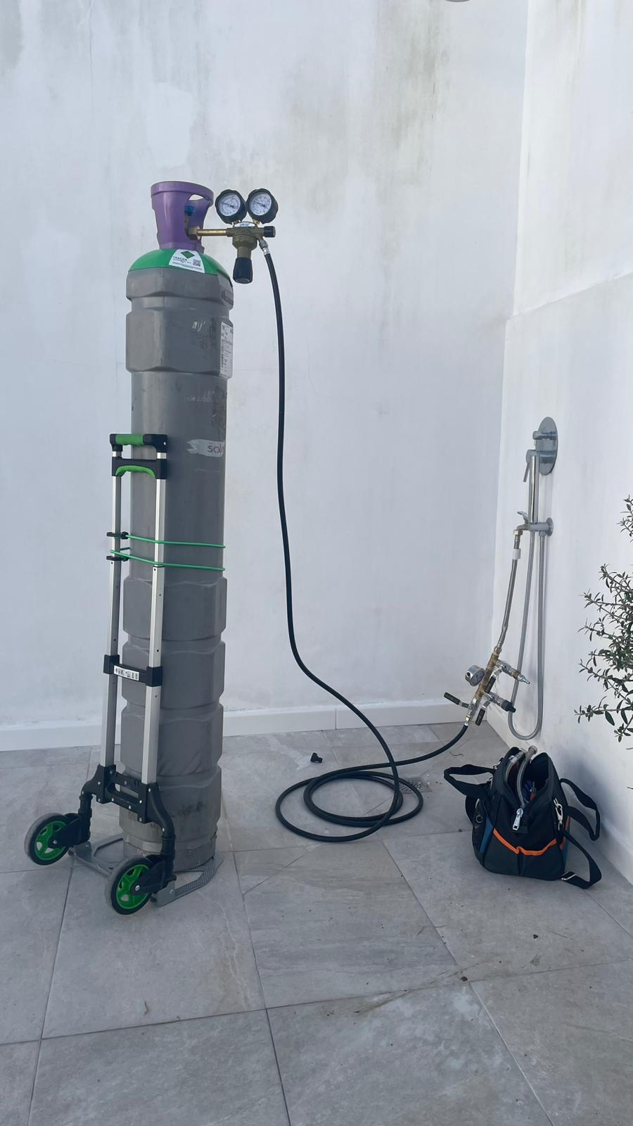 Cuando se aplica esta técnica, introducimos un gas inerte y seguro a presión en el interior de la tubería. El gas se desplaza por la conducción y busca la salida por el punto de rotura.